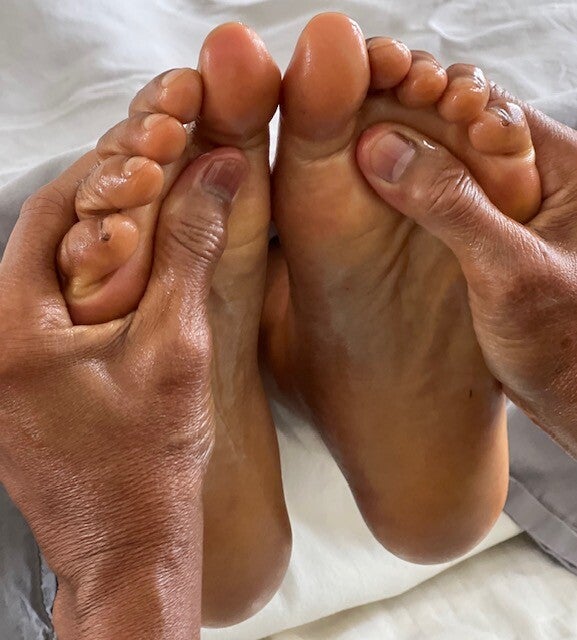 Base oils are olive oil or sweet almond oil. Other aryuvedic oils can be used. I combine essences such as geranium or rose or one of many essences within my collection. You may sniff and choose an essence to your liking. Oil is heated to a temperature durable to the touch. Treatment involves oils flowing to the scalp and hair and the client needs to be prepared to allow an overnight head wrap (optional but recommended). Or you may bring your shampoo and conditioner to wash your hair after the treatment. Followed by a reiki treatment. Duration 120 min. $200